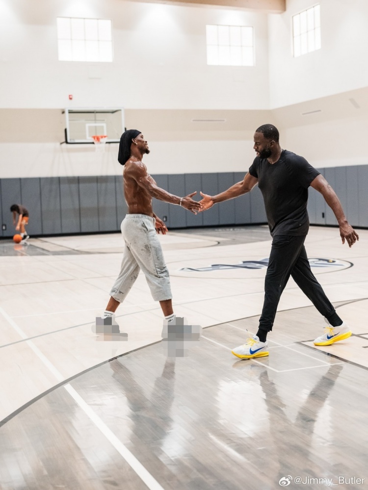 9月2日,金州勇士队球星吉米-巴特勒通过微博分享了一组与队友德雷蒙德-格林共同训练的照片。